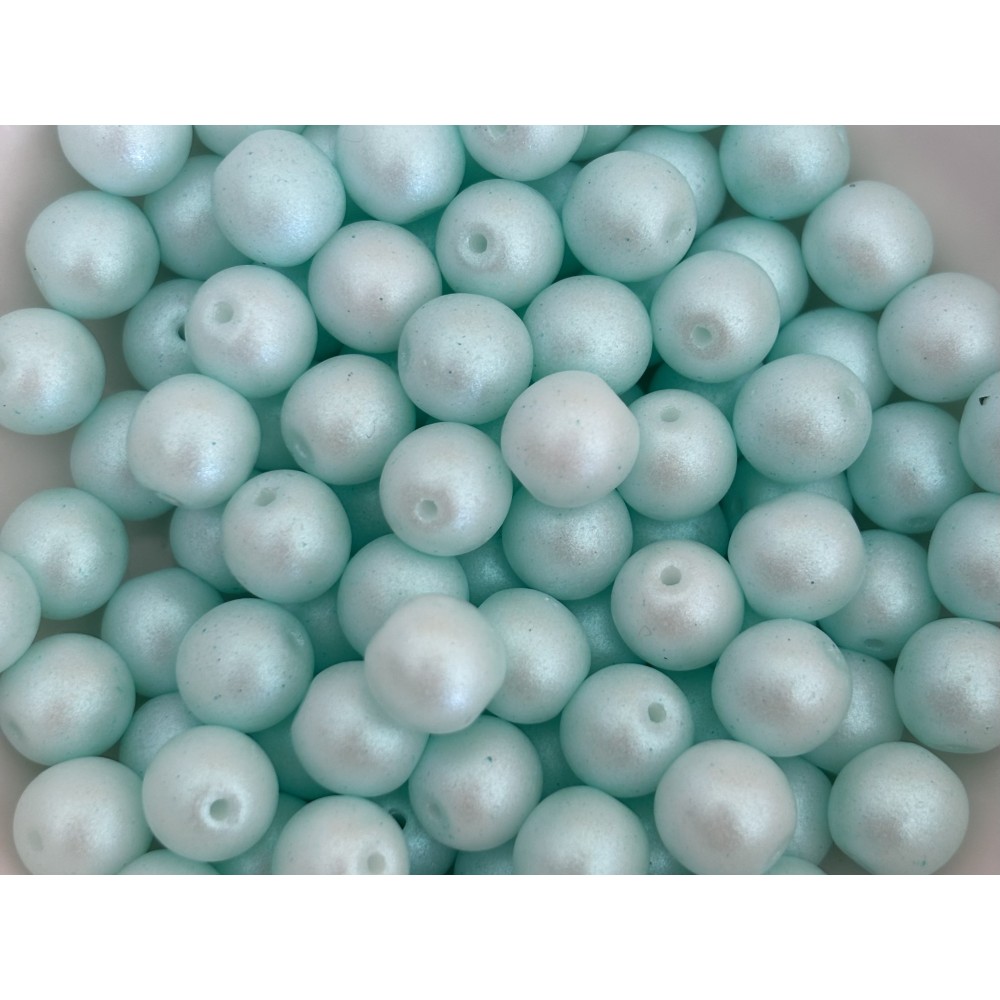 Ručně vyráběná kulatá perla duhová matná. Uvedená cena za jedno balení 100 ks.